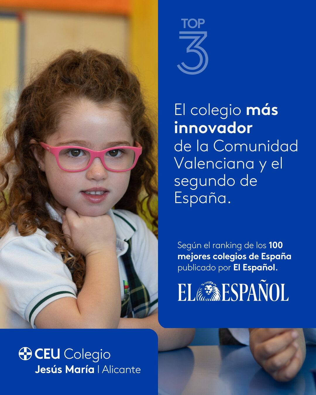 Por décimo año consecutivo y en concordancia con el nuevo panorama educativo, El Español ha vuelto a seleccionar los 100 mejores colegios de España. Como costumbre, la lista distingue entre los 50 más sobresalientes, los 30 más innovadores, listado que encabeza el CEU Jesús María como el más innovador de Alicante y 2º de España, y los 20 internacionales más destacados.